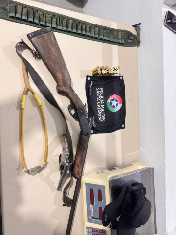 Diante dos fatos, os policiais deram voz de prisão ao suspeito, que foi conduzido à Delegacia de Polícia Civil de Tubarão para os procedimentos cabíveis. As armas e as munições foram apreendidas.